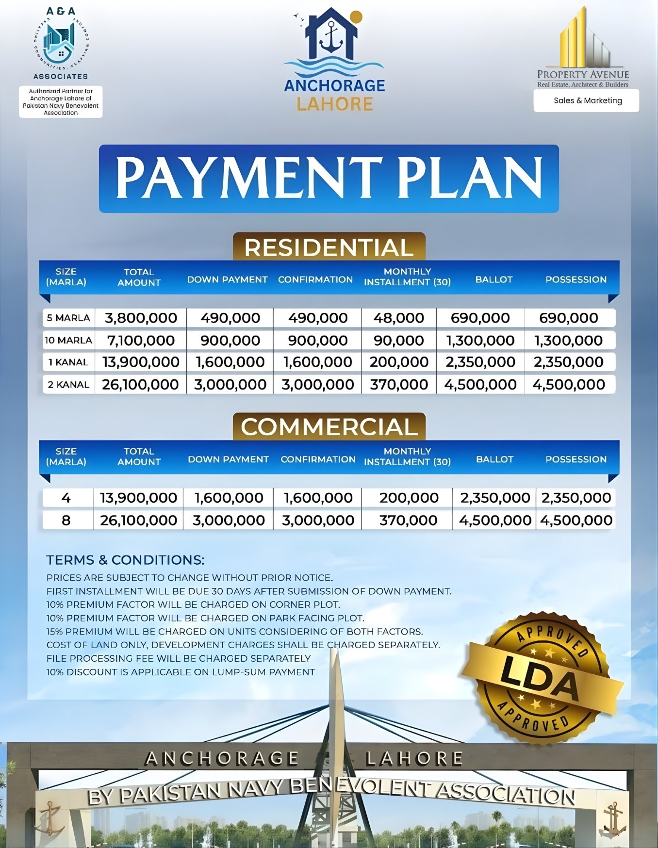 Secure Your Investment with Authorized Files As authorized sales partners, We offers direct access to the official inventory of Naval Anchorage Lahore. We currently have files available on the flexible installment plan, catering to diverse investment budgets and housing needs.